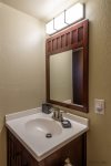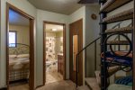 The master bedroom is your perfect mountain sanctuary, featuring a queen bed and a convenient queen hide-a-bed. It’s bright and airy with large windows that bring in natural light and offer peaceful views of the pond. You’ll also find a flat-screen TV for entertainment in the master bedroom.