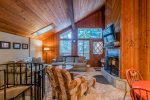 Step inside to find a beautifully furnished living area, perfect for relaxing after a day of adventure. The fully equipped kitchen has everything you need to prepare a delicious meal, and the cozy living room, complete with a fireplace, creates a warm and inviting atmosphere. Plus, stay connected with complimentary Wi-Fi and enjoy your favorite shows and movies on the 50" flat-screen TV (Netflix access—just log in with your own account).