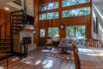Cozy Living Area: Relax in style with inviting furnishings, a fireplace to keep you warm during cool evenings, and large windows that fill the space with natural light.