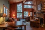 Spacious & Inviting: Boasting 1255 square feet of thoughtfully designed space, the open-concept living area features stylish furnishings, creating a warm and welcoming atmosphere. Large picture windows flood the space with natural light and offer stunning views of the surrounding mountain forest, allowing you to unwind in pure tranquility.