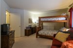Two bedrooms on the lower level, each with comfortable beds and ample storage