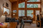 Main Living Area: Kick back by the fireplace and enjoy a movie night on the flat-screen TV (Netflix! Log into with your own account). The fully equipped kitchen is ready for you to show off your culinary skills or just prepare basic some snacks. And when you need fresh air, step out onto your private deck for some peaceful mountain vibes!